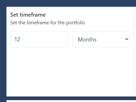 The first step to building your portfolio is setting the time frame. The time frame is how far back you want to gather data on your portfolio. This can be in either Months or Years. In this example we’ve set it to the last 12 months: